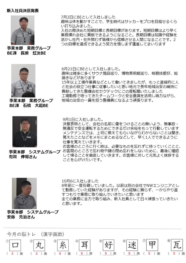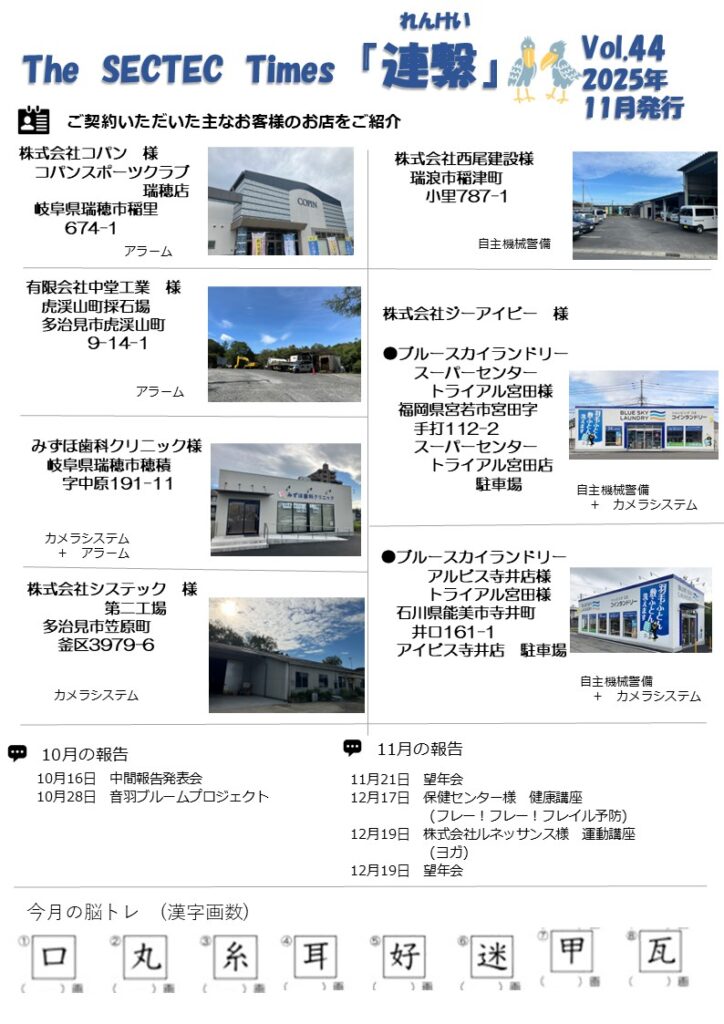 HOME > 社内報 > 社内報 The SECTEC Times「連繫」Vol.44(2025年11月1分)を発行しました 更新日:2025年10月23日 Twitter Share Google+ Pocket Hatena LINE -社内報