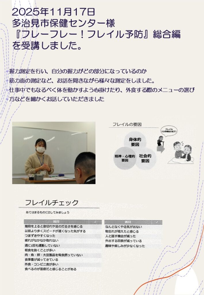 2025年11月17日 多治見保健センター様『フレーフレー!フレイル予防』総合編の講習を受講しました
