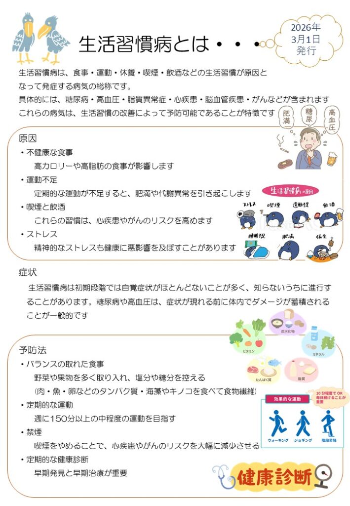 HOME > 健康だより > 健康だより 健康だより(2026年3月1日発行) 更新日:2026年2月18日 Twitter Share Google+ Pocket Hatena LINE -健康だより
